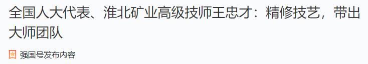 《學習強國》:全國人大代表、淮北礦業高級技師王忠才——精修技藝,帶出大師團隊
