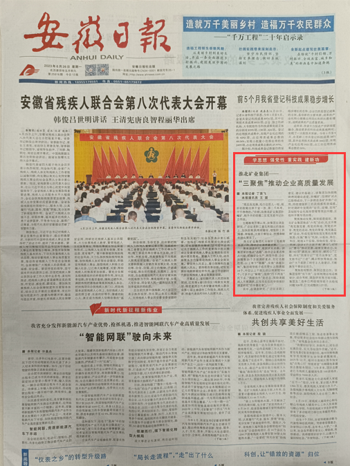 《安徽日報》一版:淮北礦業集團“三聚焦”推動企業高質量發展